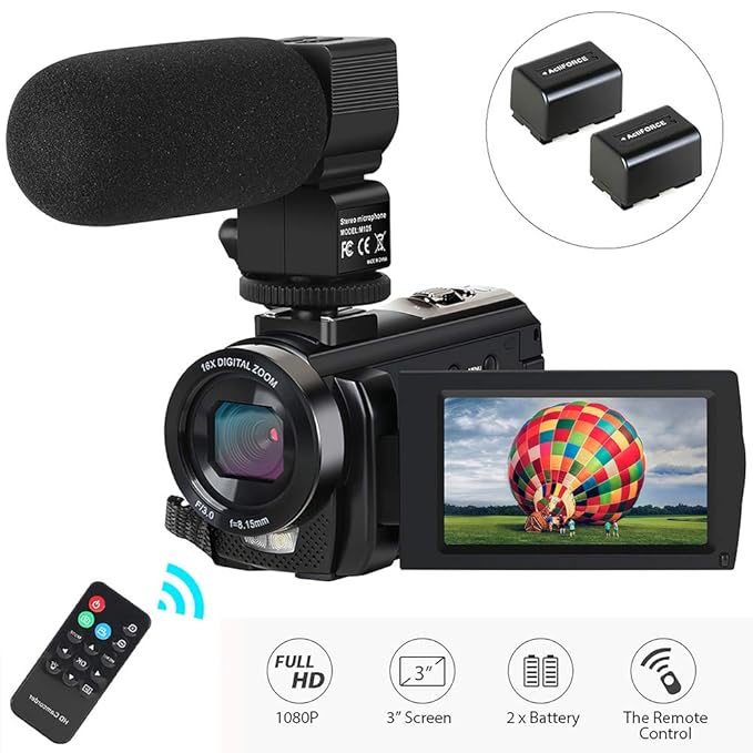 Video Camera Camcorder,Digital Camera Recorder with Microphone 1080P 30FPS 24MP 3" LCD 270 Degrees Rotatable Screen 16X Digital Zoom YouTube Vlogging Camera with Remote Control,2 Batteries